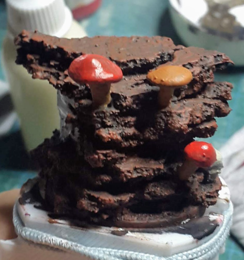 3. Once dry, fix it with scenery glue (my mix is 1 part water and 1 part wood glue and a drop of dish soap), use a dropper bottle (at this stage I also glued a skull and some homemade greenstuff mushrooms).